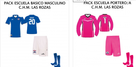 Para las escuelas (pre benjamín-benjamín, alevín), existe el pack escuelas que incluye primera equipación completa. Esto aplica a todas las escuelas/colegio excepto el Alegra y ZOLA. En el caso que necesiten tallas distintas para cada prenda deben agregarlo en comentarios