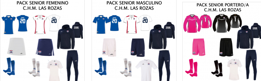 Todos los jugadores de infantil a senior tienen que pedir el pack completo que incluye primera y segunda equipación completa, chándal completo y camiseta de entrenamiento. En el caso que necesiten tallas distintas para cada prenda deben agregarlo en comentarios